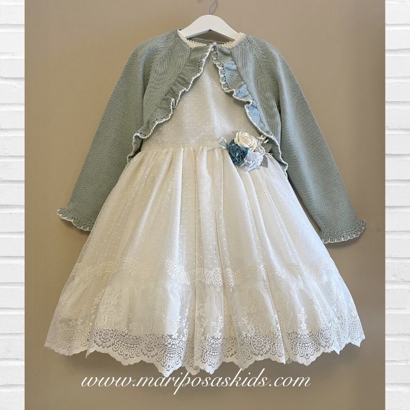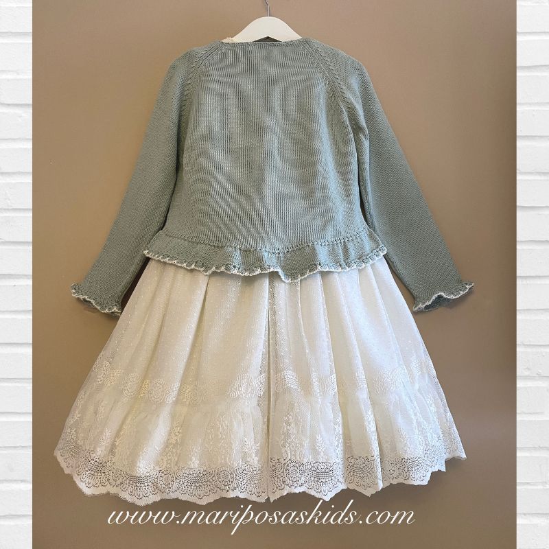 LOLITTOS colección PRALINÉ Primavera – Verano 2026, chaqueta punto en aguamarina ( turquesa claro) de corte levita .