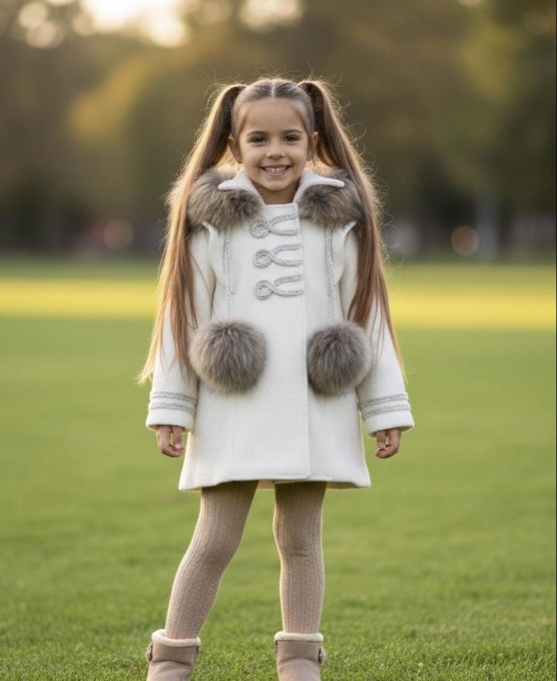 COQUELIN Abrigo Blanco Lana y Pelo Natural