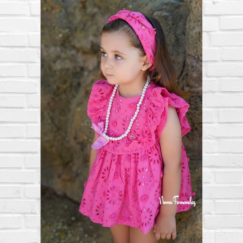 Jesusito con braguita en algodón perforado en FUCSIA con collar incluido.