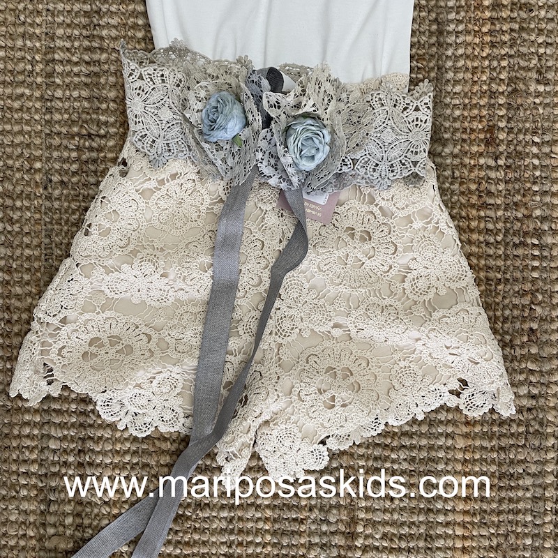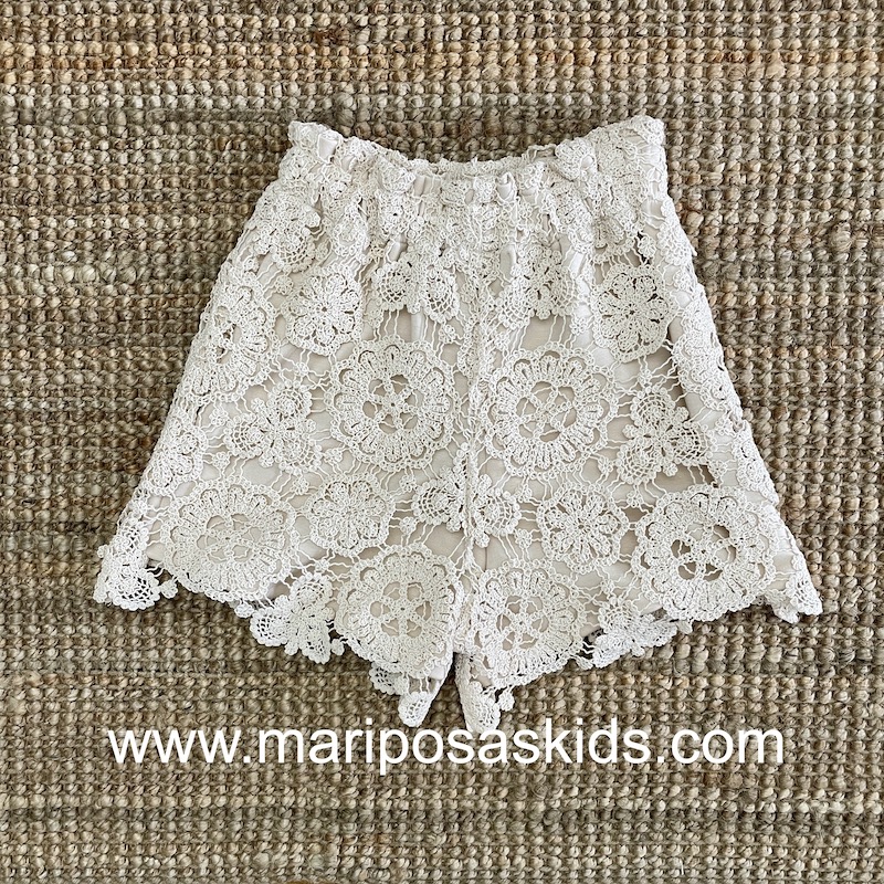 BELLA BIMBA COLLECTION PRIMAVERA-VERANO 2026, Colección DANU, short en tejido CROCHE beige sobre forro crudo. Cintura elástica.