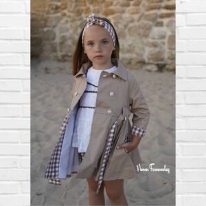 GABARDINA CAMEL, Gabardina de corte cintura con cuelo combinada con vichy, corte favorecedor y de lineas elegantes.